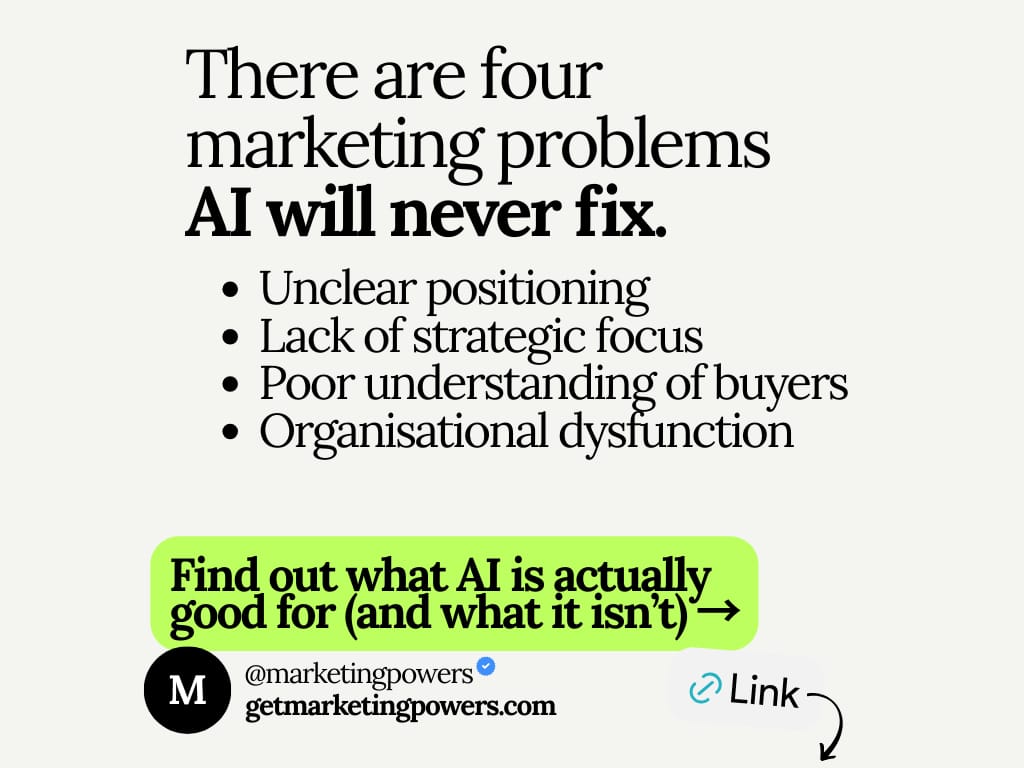 That’s because AI doesn’t solve the hardest problems in marketing.